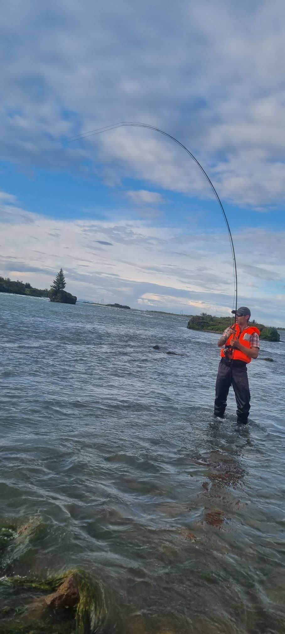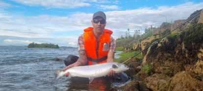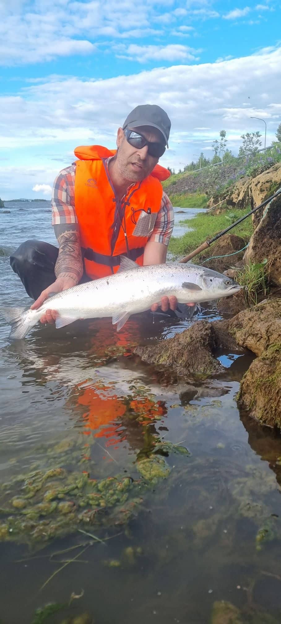 Tommi Za, veiðmaður, kíkti á svæðið nú seinni partinn, við annan mann. Tommi var tiltölulega fljótur að finna bletti þar sem laxinn heldur sig, eða stoppar, á leið sinni upp ána. Þegar við heyrðum frá Tomma nú um kvöldmat, þá var hann buinn að setja í 3 laxa og land 2 þeirra. Laxarnir tóku Sunray. Tommi ætlaði að skanna svæðið betur og færa okkur fleiri fréttir.