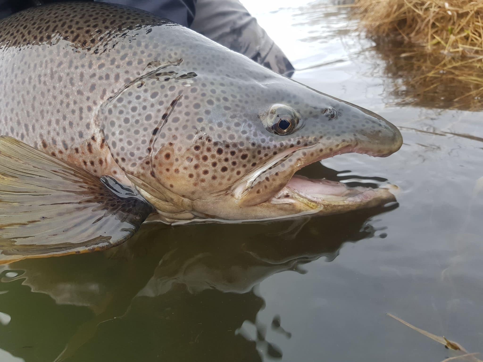 Náðu þeir félagar bæði flottum urriðum og birtingum. Stærsti urriðinn var sannkallað Monster – 7,6 kg spikfeitur fiskur sem taldi sig vera kominn í feitt, þegar hann réðst á straumflugu sem Jóhannes kastaði fyrir hann. Magnaður fiskur sem veit á gott fyrir næstu daga, ekki síst þegar sannarlega fer að vora.