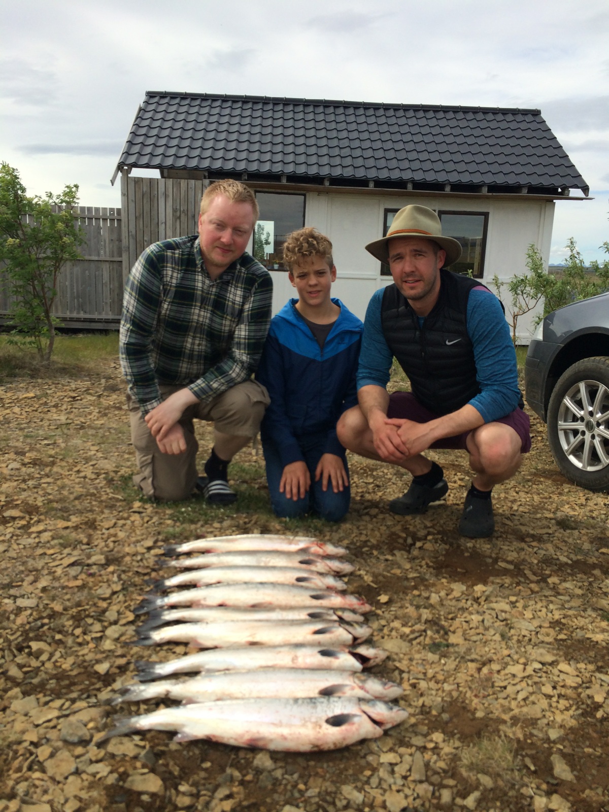 Við sögðum fyrir skömmu frá góðri veiði í Gufuá og birtum hér aftur smá frétt frá ánni, enda veiðist vel þar þessa dagana. Gylfi Jón Gylfason var við veiðar í ánni í dag og í gær ásamt syni sínum, Sveini Inga og þeim Baldri Guðmundssyni og Róbert Orra Skúlasyni. Þeir félagar náðu á þessum tíma samtals 12 löxum og misstu amk. annað eins. Á myndinni hér til hliðar má sjá þá Svein Inga, Baldur og Róbert með afla ferðarinnar og nýja veiðihúsið við Gufuá er í bakgrunni.