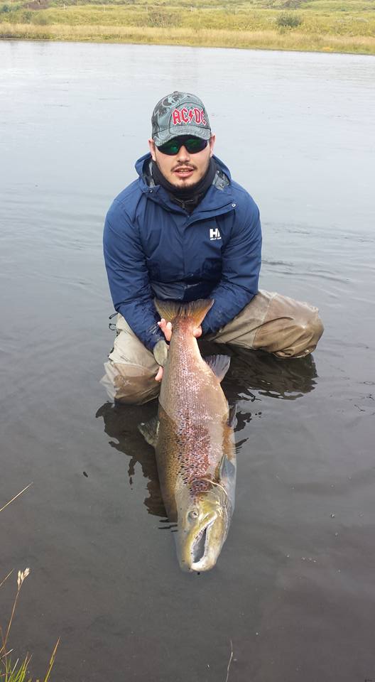 Ytri Rangá er að sjálfsögðu þekkt fyrir það að vera aflahæsta á landsins, nú undanfarið, ár eftir ár. Í gegnum tíðina hefur hún einnig verið þekkt fyrir góðar smálaxagöngur en síðustu árin hefur stórlaxi einnig fjölgað mikið í ánni og til marks um það þá hafa nokkrir laxar um og yfir 100 cm veiðst í ánni í sumar, sá stærsti 104 cm langur en hann er hér á myndinni til hliðar. Ýmsir veiðimenn sem veitt hafa ána í sumar hafa sagt sögur af risum sem hafa sloppið eftir langa eða snarpa baráttu og menn vita af stórum drekum sem liggja í sínum holum á Rangarflúðunum, Stallmýrarfljóti og í Djúpósnum, en fyrir ofan Árbæjarfoss eru einnig nokkrir alvöru fiskar.