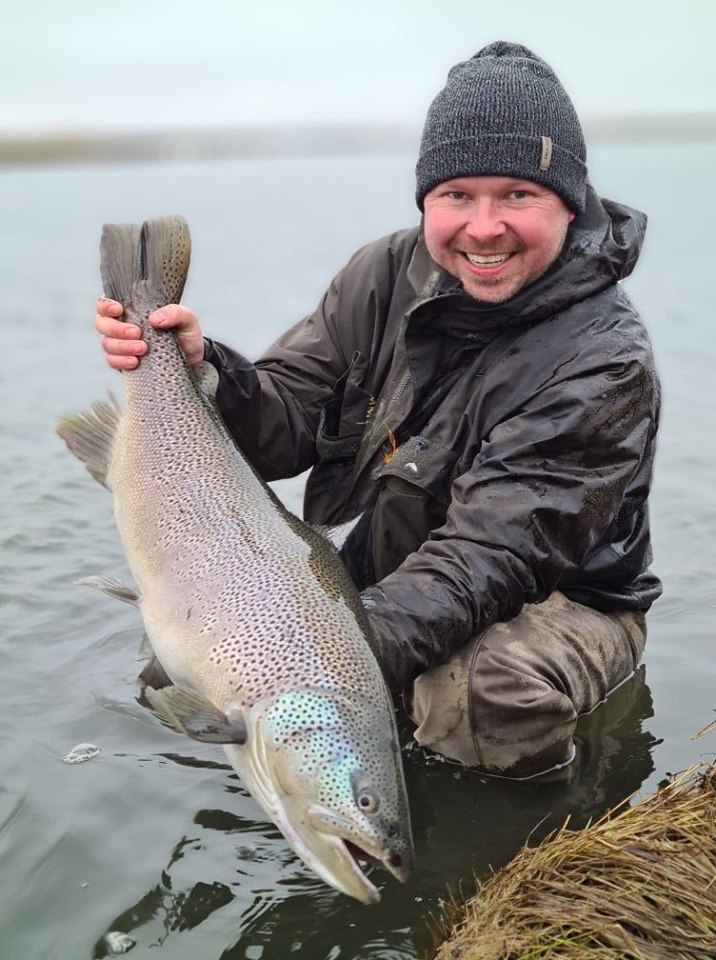 Hér að neðan eru nokkrir fiskar sem komu á land nú síðustu daga. Flotta hrygnan hérna í forgrunni kom á land á Breiðabakka í morgun. Veiðimaðurinn er Páll Ágúst Ólafsson. Fiskurinn mældist 85 cm langur og 55 cm þykkur – líklega nærri 9 kg að þyngd.